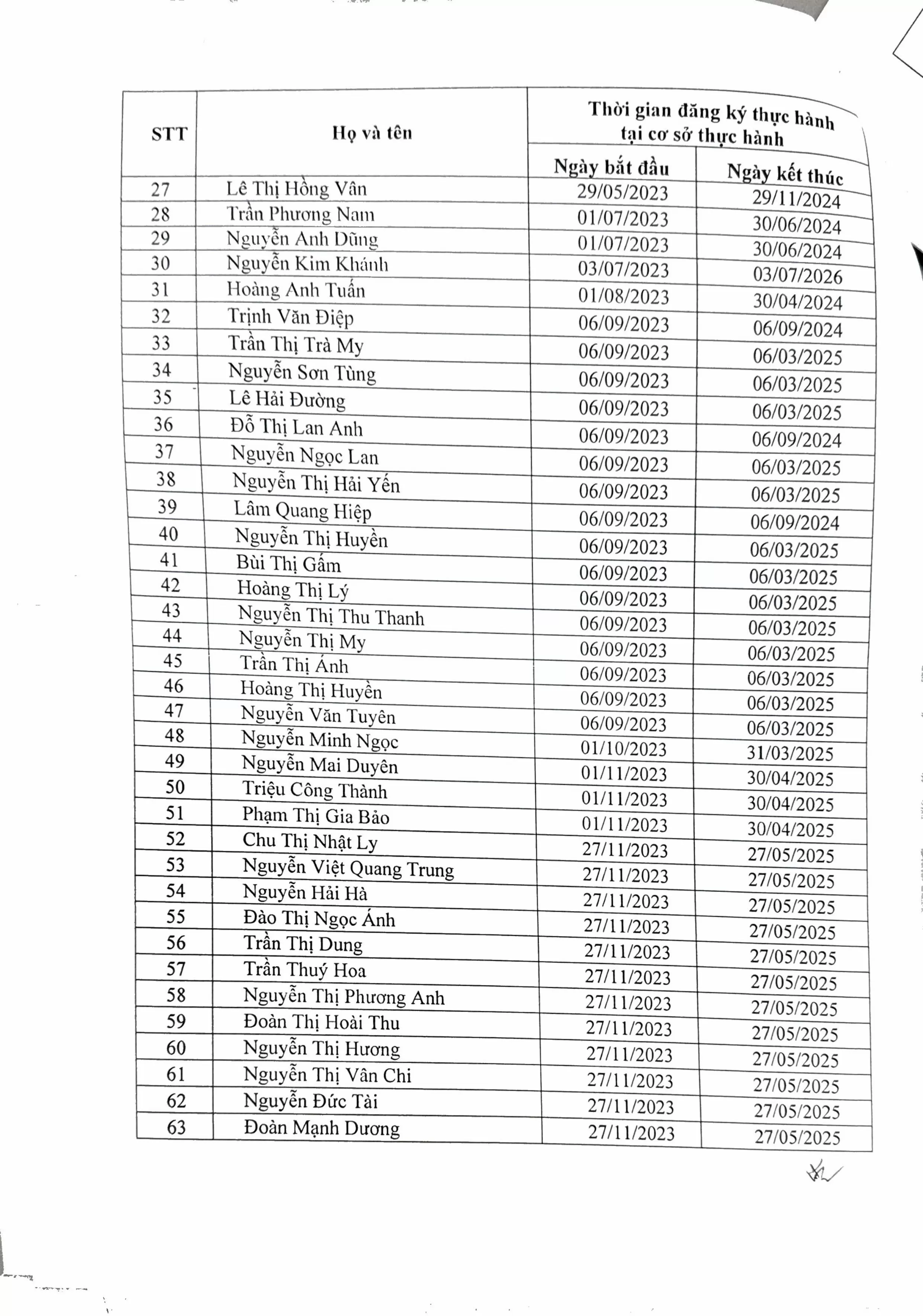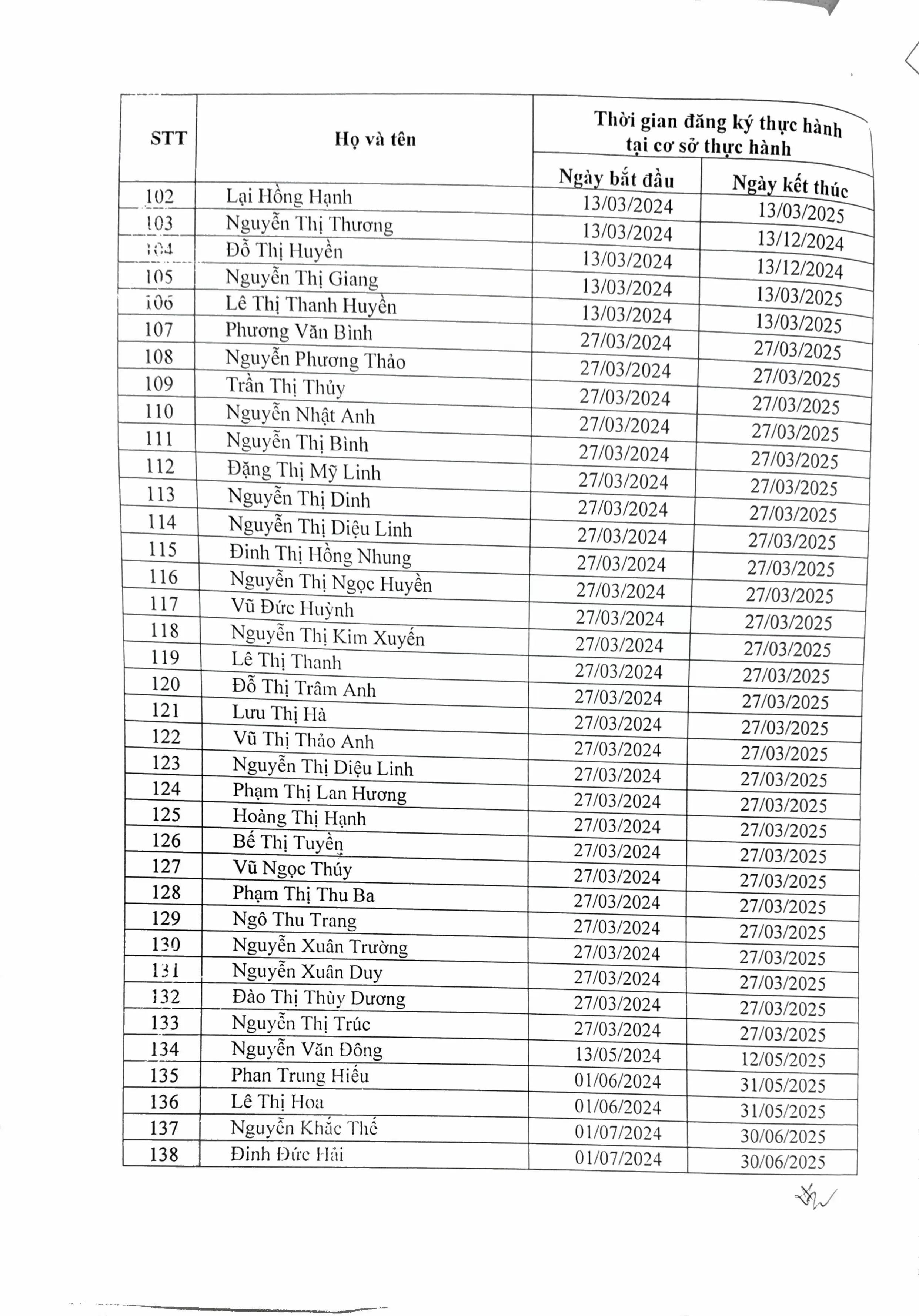 Danh sách người thực hành khám chữa bệnh tại Bệnh viện Châm cứu Trung ương