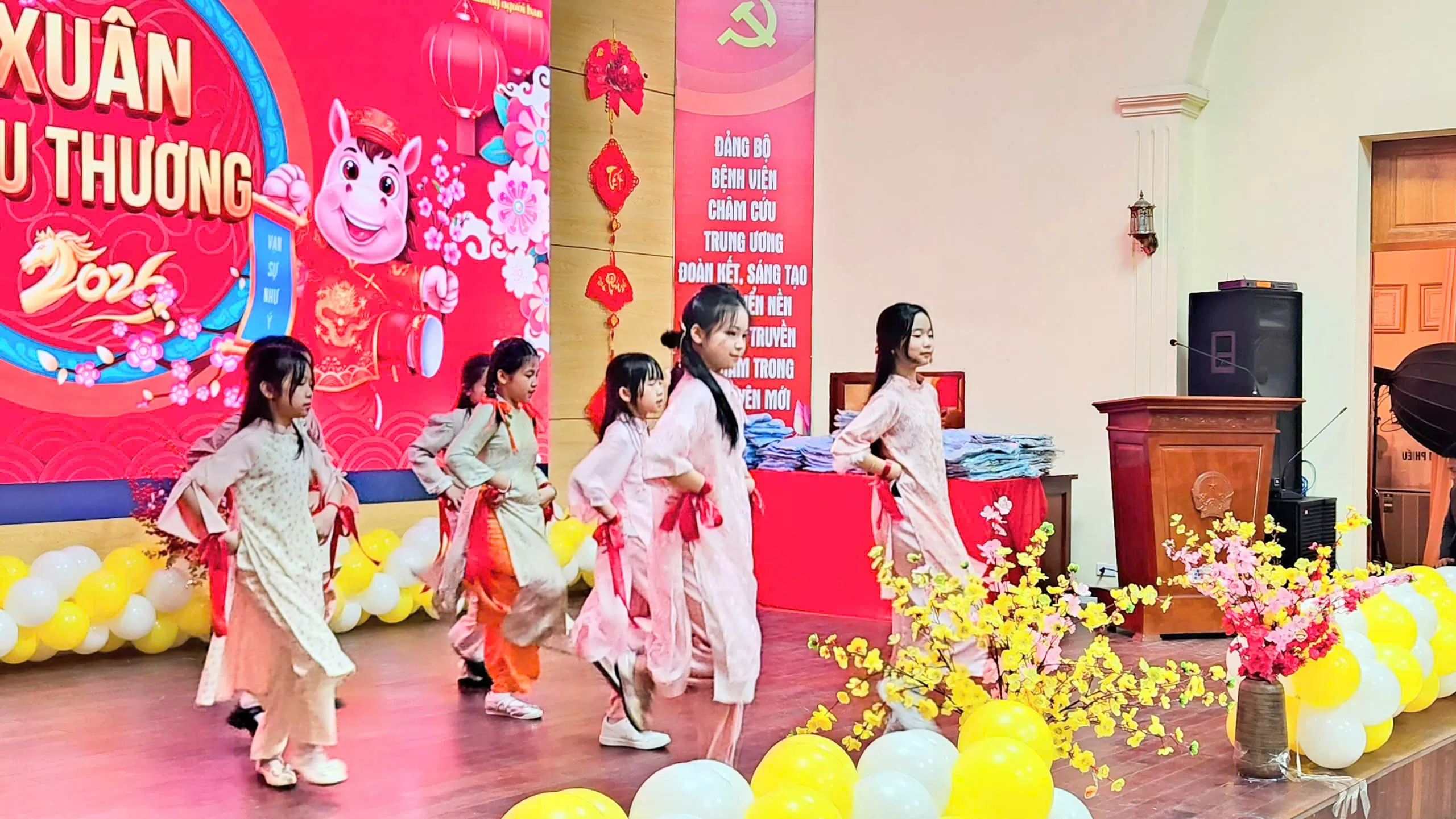 Ngoài hoạt động giao lưu và trao quà cho người bệnh, chương trình còn tổ chức nhiều tiết mục văn nghệ, diễn xiếc chào xuân. Các tiết mục đặc sắc đã góp phần mang đến không khí háo hức mừng năm mới, giúp người bệnh và người nhà có thêm niềm vui, giảm bớt căng thẳng trong quá trình điều trị. Chương trình “Xuân yêu thương 2026” là một trong những hoạt động ý nghĩa được tổ chức nhằm động viên tinh thần người bệnh, góp phần tạo không khí ấm áp, sẻ chia trong bệnh viện mỗi dịp Tết đến, xuân về.
