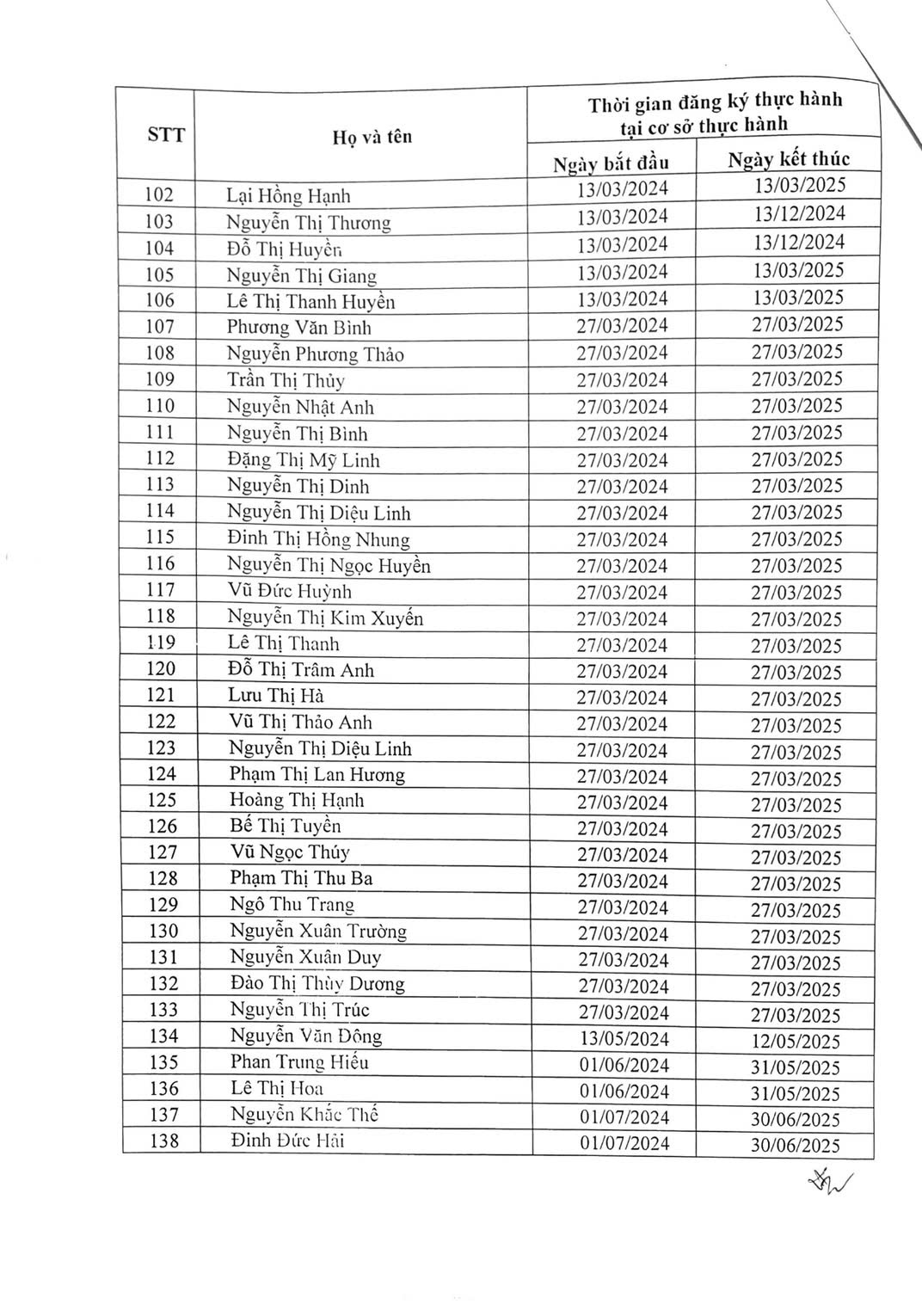 CÔNG BỐ DANH SÁCH HỌC VIÊN THỰC HÀNH NGHỀ KHÁM BỆNH, CHỮA BỆNH TẠI BỆNH VIỆN CHÂM CỨU TRUNG ƯƠNG