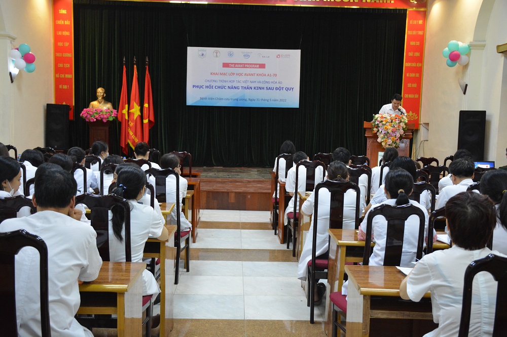 Sáng ngày 31/05/2022, Thực hiện công văn 215/ CV - THYH ngày 05/05/2022 của Tổng hội y học Việt Nam về việc tổ chức khóa tập huấn Phục hồi chức năng thần kinh sau đột quỵ. Bệnh viện Châm cứu Trung ương tổ chức khai mạc “Tập huấn Phục hồi chức năng thần kinh sau đột quỵ cho các thầy thuốc tại Bệnh viện Châm cứu Trung ương theo chương trình Avant”. Chương trình do tổng hội Y học Việt Nam phối hợp với Tổ chức Đột quỵ thế giới, Hội phục hồi chức năng Việt Nam và EVER Pharma tổ chức khóa tập huấn 70 trong khuôn khổ Chương trình Hợp tác giữa Việt Nam và Cộng hòa Áo (Chương trình AVANT) – Phục hồi chức năng thần kinh cho bệnh nhân sau đột quỵ đã được Bộ y tế phê duyệt.