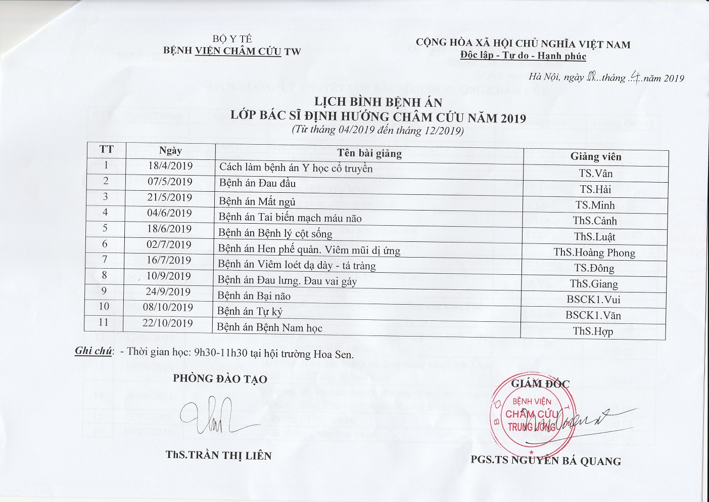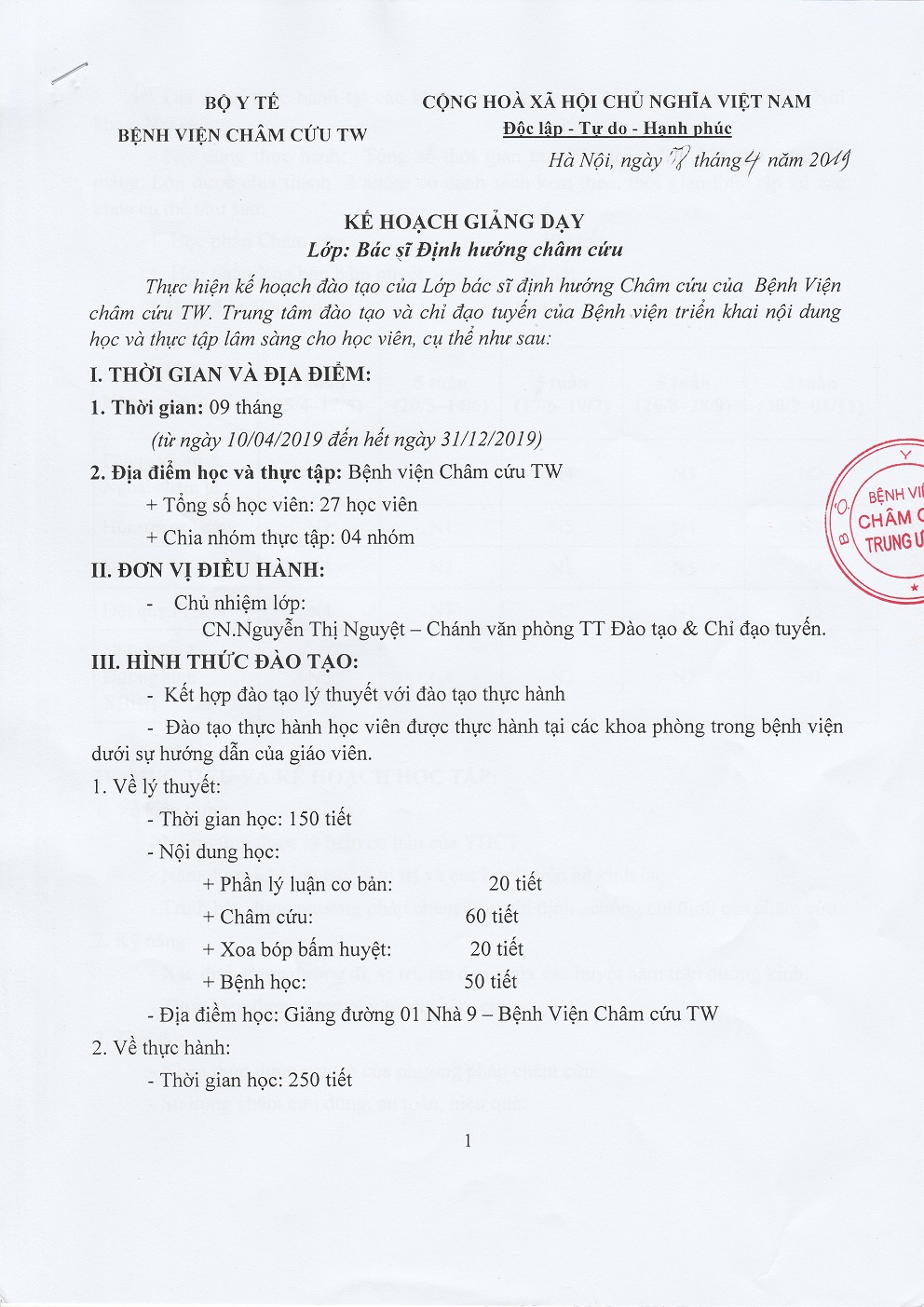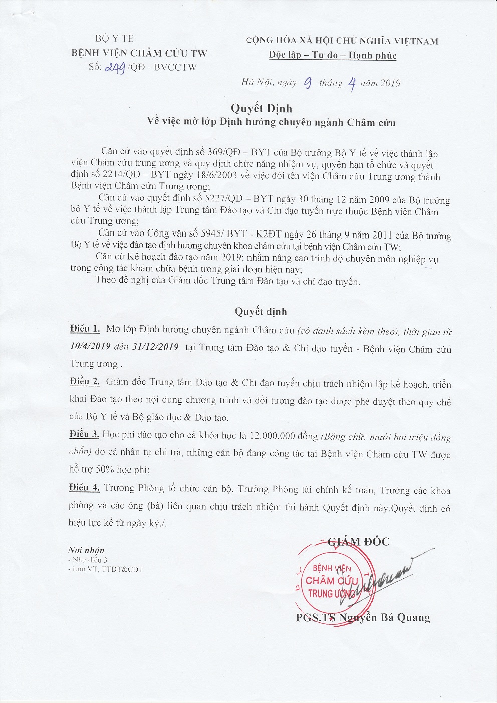 Quyết định về việc mở lớp Định hướng chuyên ngành Châm cứu