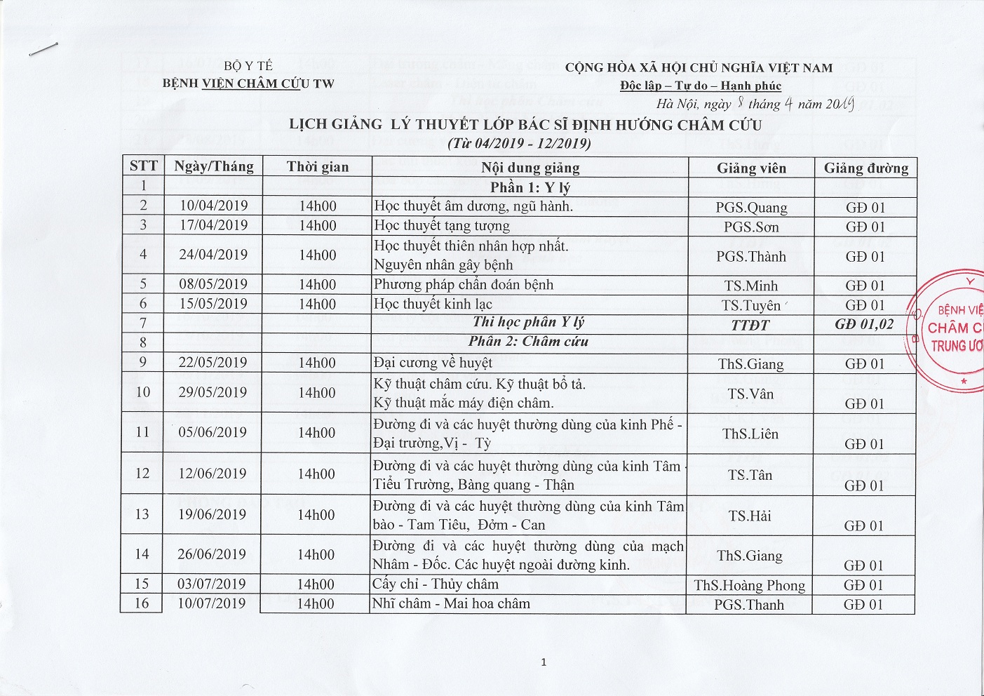 Trang chủ Quyết định về việc mở lớp Định hướng chuyên ngành Châm cứu