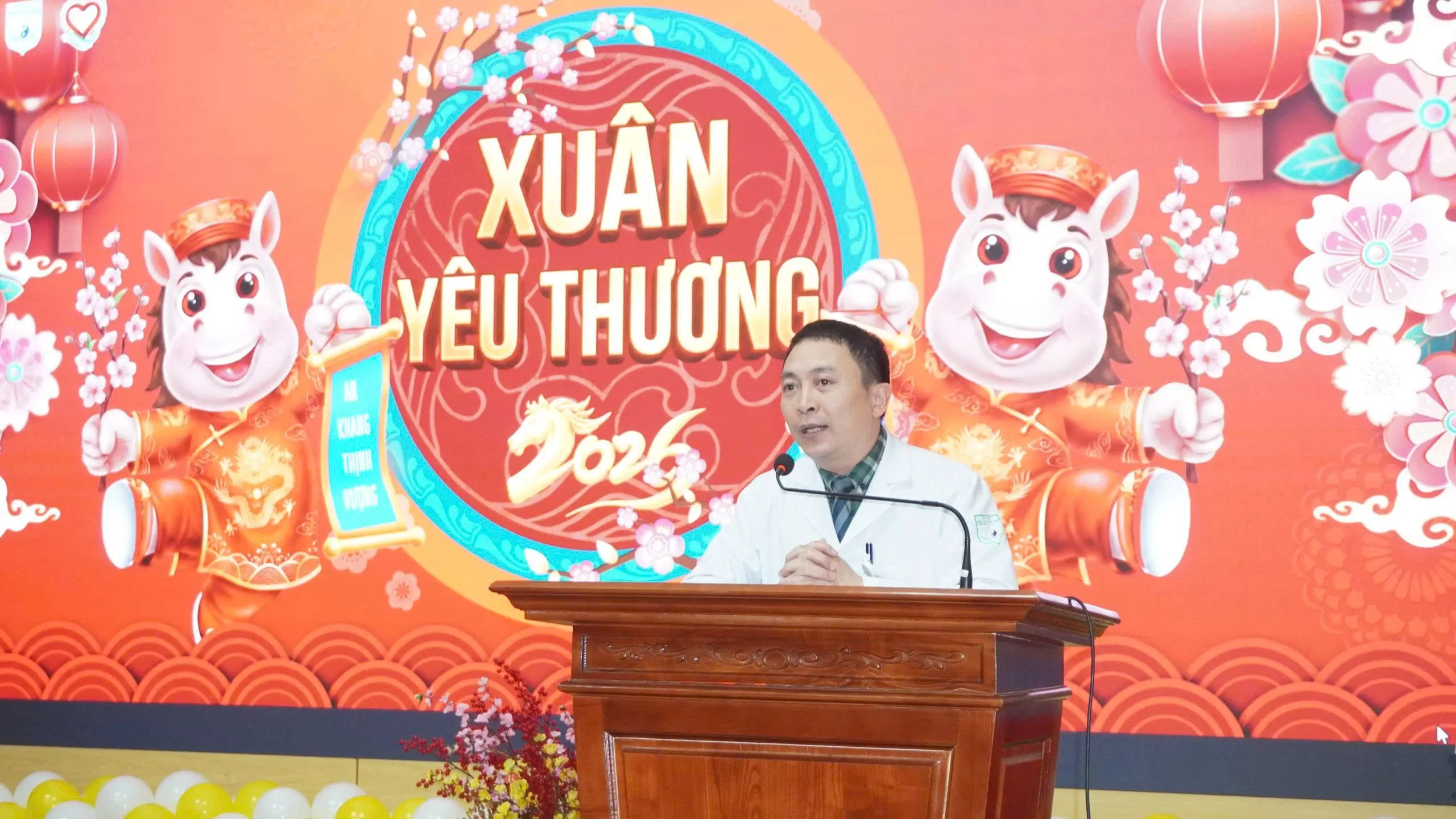 Phát biểu tại chương trình, TS. Nguyễn Duy Luật đã gửi lời thăm hỏi, động viên tới người bệnh đang điều trị tại bệnh viện, đồng thời chúc người bệnh sớm hồi phục sức khỏe để cùng gia đình đón Tết an lành. Tiến sĩ cũng nhấn mạnh ý nghĩa của việc chăm lo đời sống tinh thần cho người bệnh, đặc biệt trong dịp Tết cổ truyền, khi nhiều người bệnh chưa thể trở về sum họp cùng gia đình. Bên cạnh đó, Phó Giám đốc Bệnh viện cũng thay mặt Ban Lãnh đạo Bệnh viện tặng hoa và gửi lời cảm ơn chân thành tới các nhà hảo tâm – những người đã luôn đồng hành, tiếp thêm nguồn lực và niềm tin cho bệnh viện trên hành trình chăm sóc sức khỏe cộng đồng.